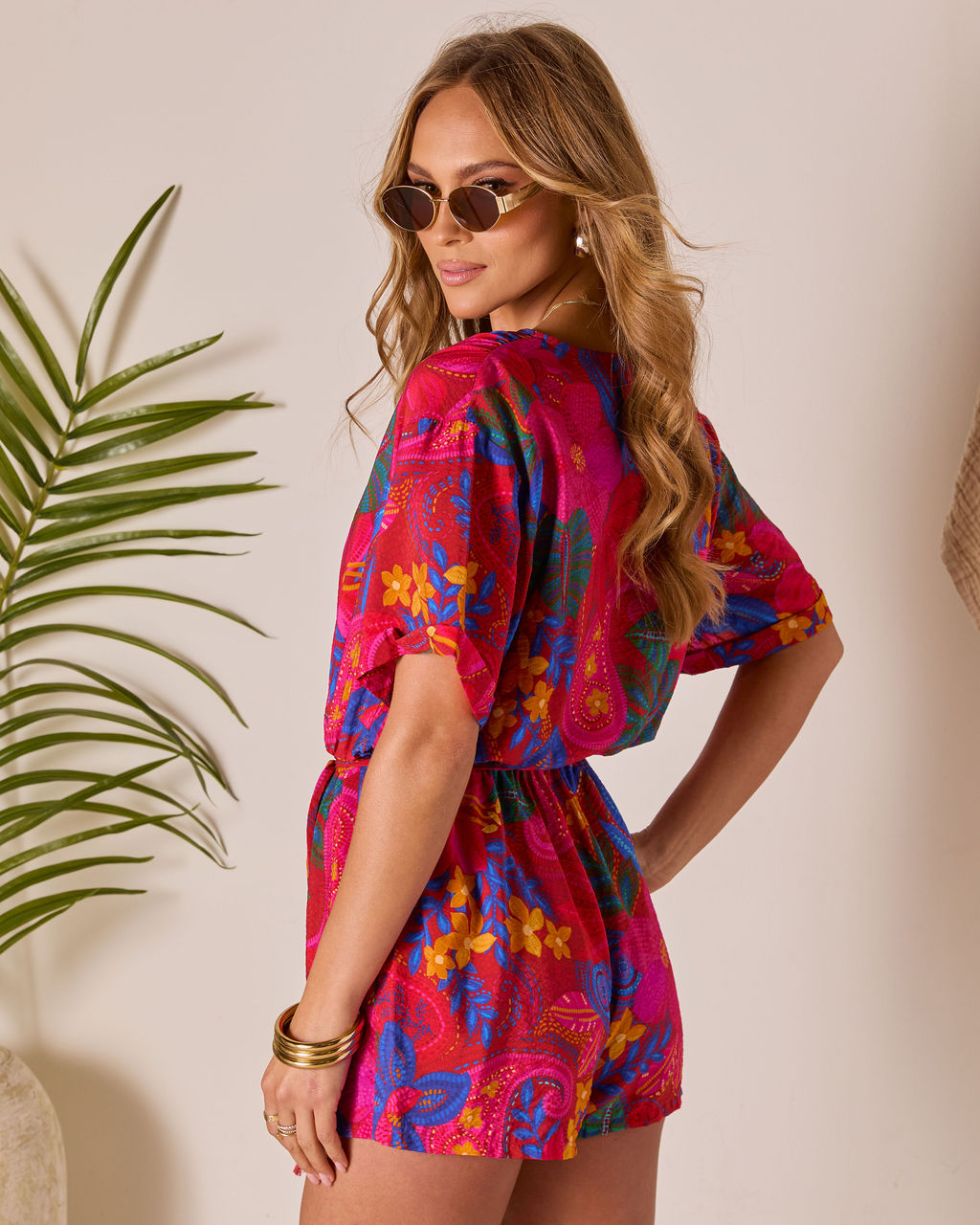 Your perfect summer outfit has arrived. The Beachside Blossom Abstract Waist Tie Romper is made from soft crepe jersey in a vibrant tropical print. It has a flattering surplice front with a mini snap button for easy wear and an elastic waistband for all-day comfort. Use the detachable tassel waist tie to define your silhouette. It’s the ideal look for enjoying mimosas by the beach or exploring a new city in style.