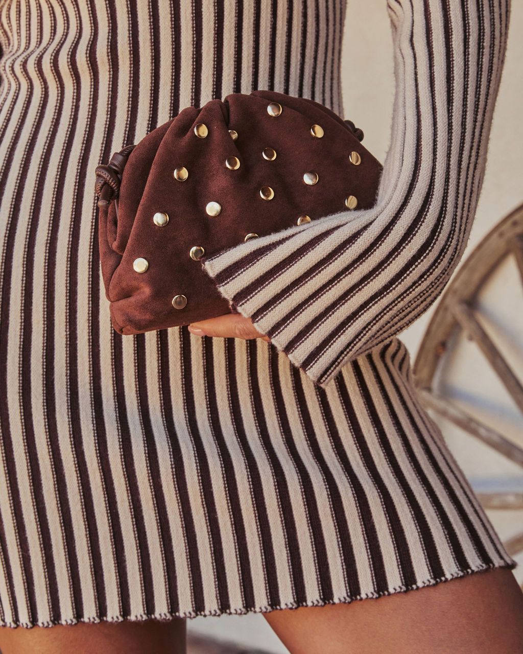 What happens when vintage charm meets downtown edge? You get the Crisetta Suede Studded Crossbody Bag, a bold little statement-maker that doesn’t try too hard. Designed in soft suede and finished with allover studded accents, this bag adds instant attitude to your autumn lineup. The structured clasp frame opens to a single main compartment (yes, it fits your essentials), while the leather shoulder strap with knotted ends brings just the right amount of detail.