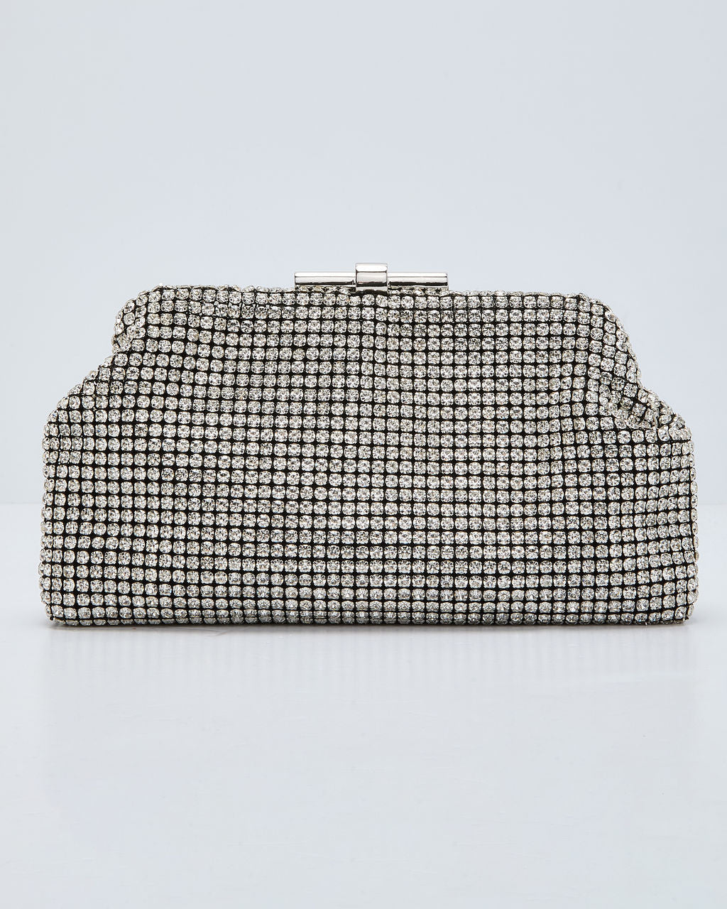 Let the champagne flutes clink to your impeccable style. The First Toast Embellished Clutch is here for every celebration, big or small. Covered entirely in dazzling rhinestone embellishments, this clutch ensures you are the main event. A sophisticated top clasp, finished with a bauble accent, secures your essentials in the main compartment, which also includes a handy interior slip pocket. For moments that require a hands-free approach to mingling, simply add the optional chain link shoulder strap.