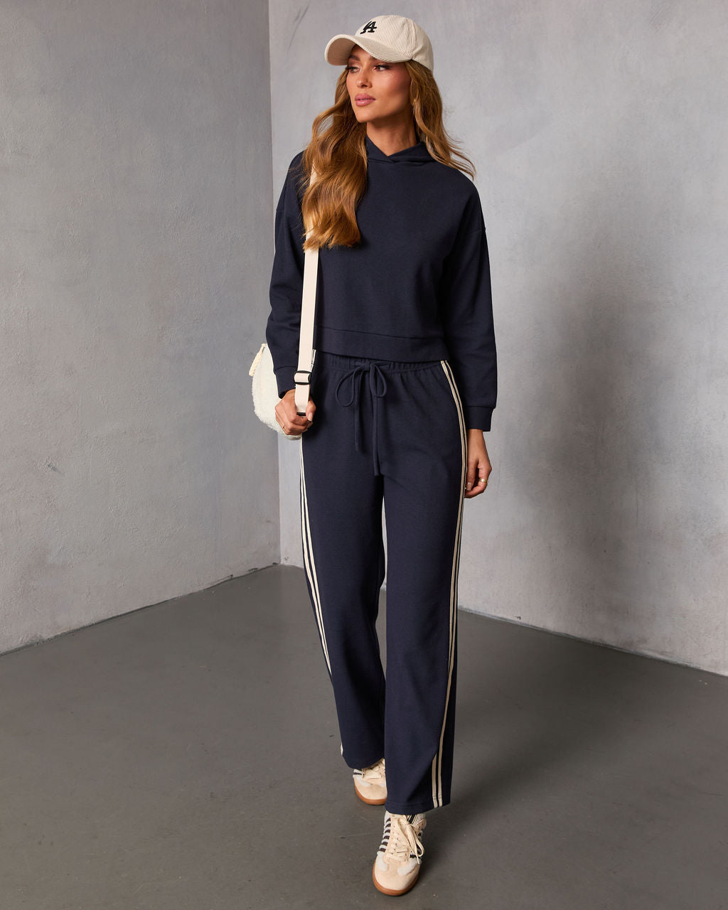 The Quiet Day Hooded Knit Sweatshirt is designed for those moments when comfort is key, but style is non-negotiable. Its cozy waffle knit fabric has a subtle stretch that moves with you, whether you're running errands or settling in for a movie marathon. The attached hood adds an extra layer of warmth and a relaxed vibe. For a perfectly coordinated and effortlessly chic look, pair it with the matching Quiet Day Striped Straight Leg Sweatpants, sold separately.
