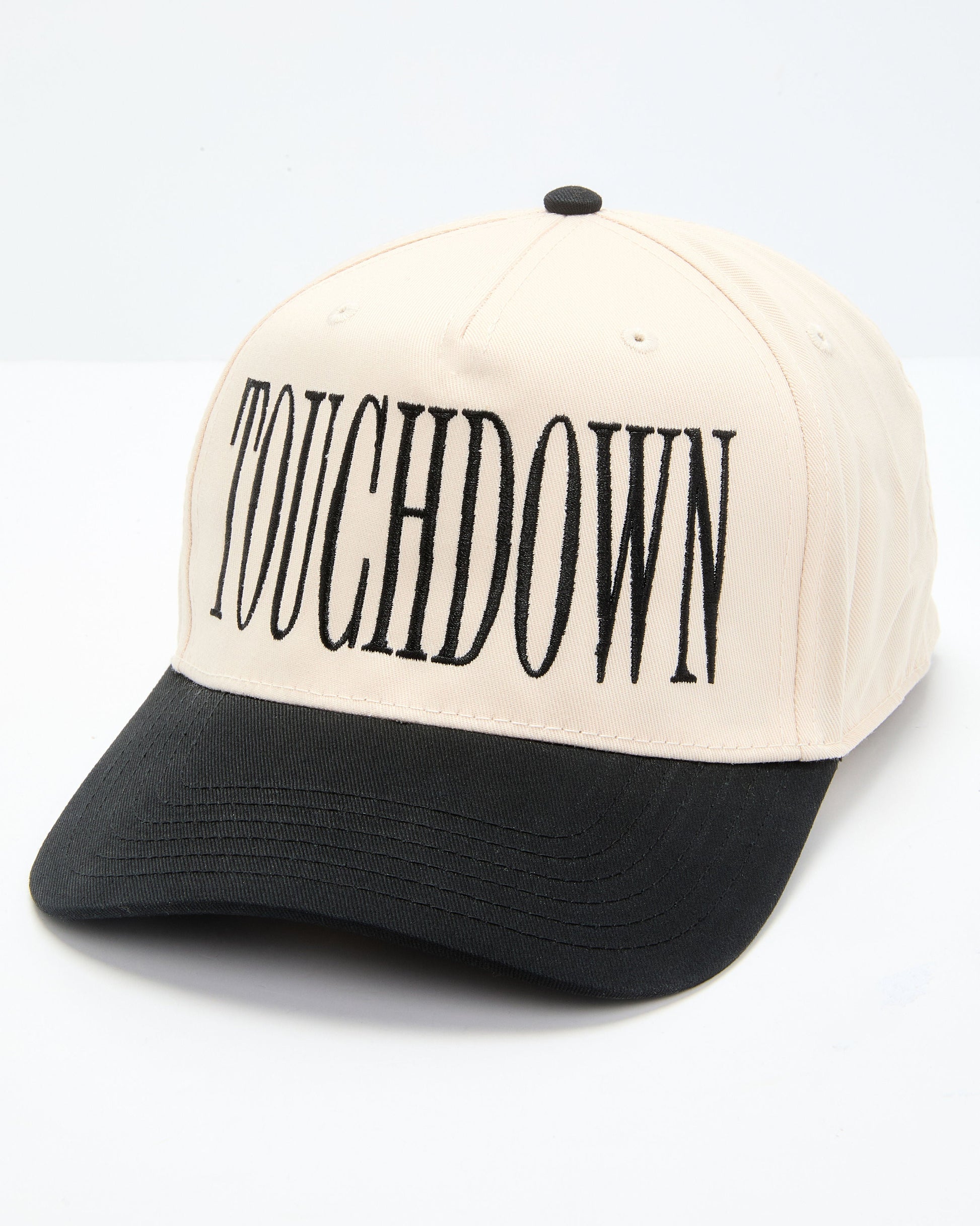 Score major style points with the Touchdown Babe Snapback Hat. Made from durable twill with a sleek contrast bill, this hat features a bold “Touchdown” script front that’s all about celebrating your winning vibe. The snapback styling gives you a customizable fit that’s as effortless as your game day glam. Whether you’re owning the tailgate or just out and about, this hat adds the perfect finishing touch to your look.